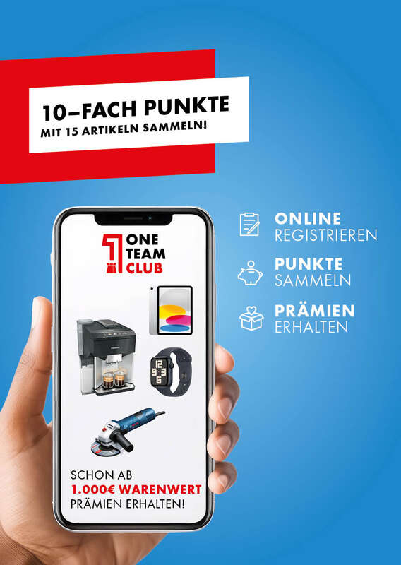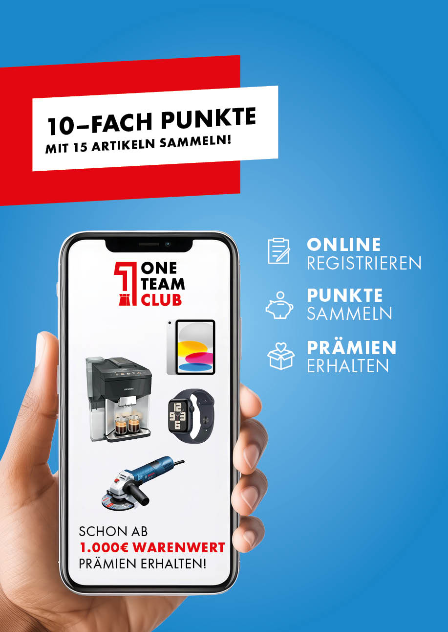 Ihr Vorteil: Mit jedem Kauf unserer Aktionsprodukte sammeln Sie wertvolle Punkte in unserem ONE TEAM CLUB. Sichern Sie sich jetzt 10-fache Punkte und wählen Sie Ihr Geschenk aus mehr als 300 attraktiven Prämien! So einfach geht es.
