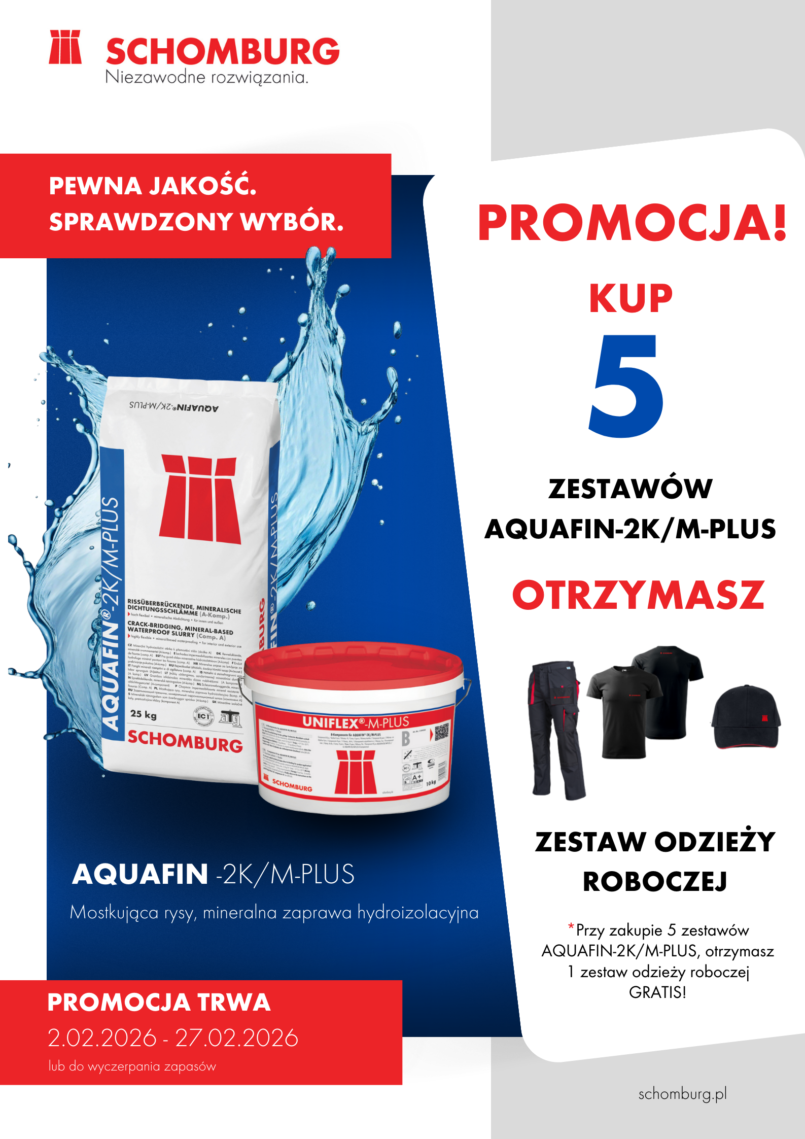 - przy zakupie 5 zestawów AQUAFIN-2K/M-PLUS, otrzymasz zestaw odzieży roboczej GRATIS!